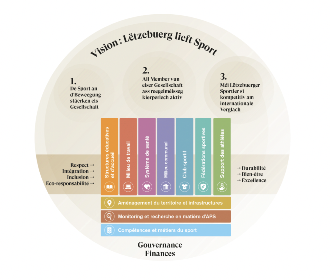 Le C.O.S.L. (Comité Olympique Sportif Luxembourgeois) est plus que jamais déterminé à promouvoir dans les années à venir les activités physiques et sportives sous toutes ses formes et à rassembler, intégrer, écouter,... toute la société dans le processus afin que ce document stratégique soit non pas un guide “du milieu sportif élargi” mais un véritable concept intégré pour le sport au Grand-Duché du Luxembourg.